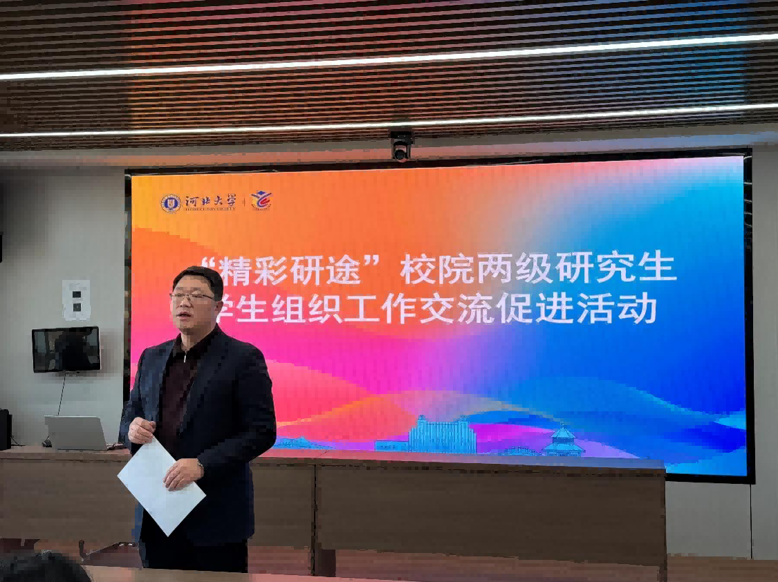 随后,“求是”研究生宣讲团关屹团长介绍了宣讲团的发展历程与特色。这支成立于2024年5月的队伍,已开展200余场主题宣讲,以“青年化阐释+元素化解码”的方式,让党的创新理论、燕赵文脉与校史专业知识变得“有温度、有共鸣”。关屹团长还以《聚焦文化符号,倡导阅读生态》为题,重点分享了“坤舆悦读会”的创新实践。该活动针对当代青年的现实困境,开创“双向激发”对话模式,运用“主题+分题”形式,将卡西尔符号学、巴赫金对话理论融入阅读推广,已成功举办多期并联动保定多所高校,获得广泛关注。