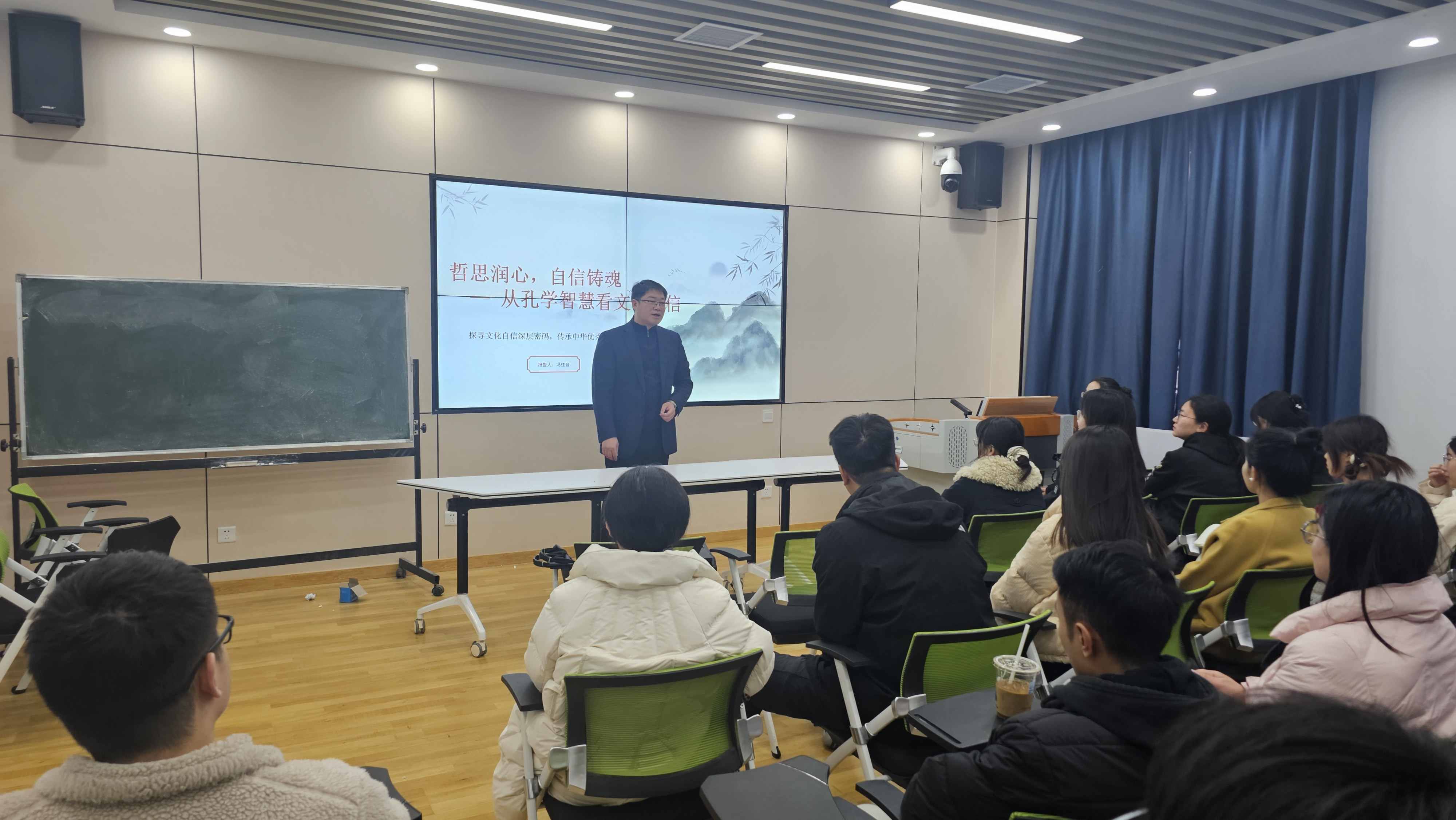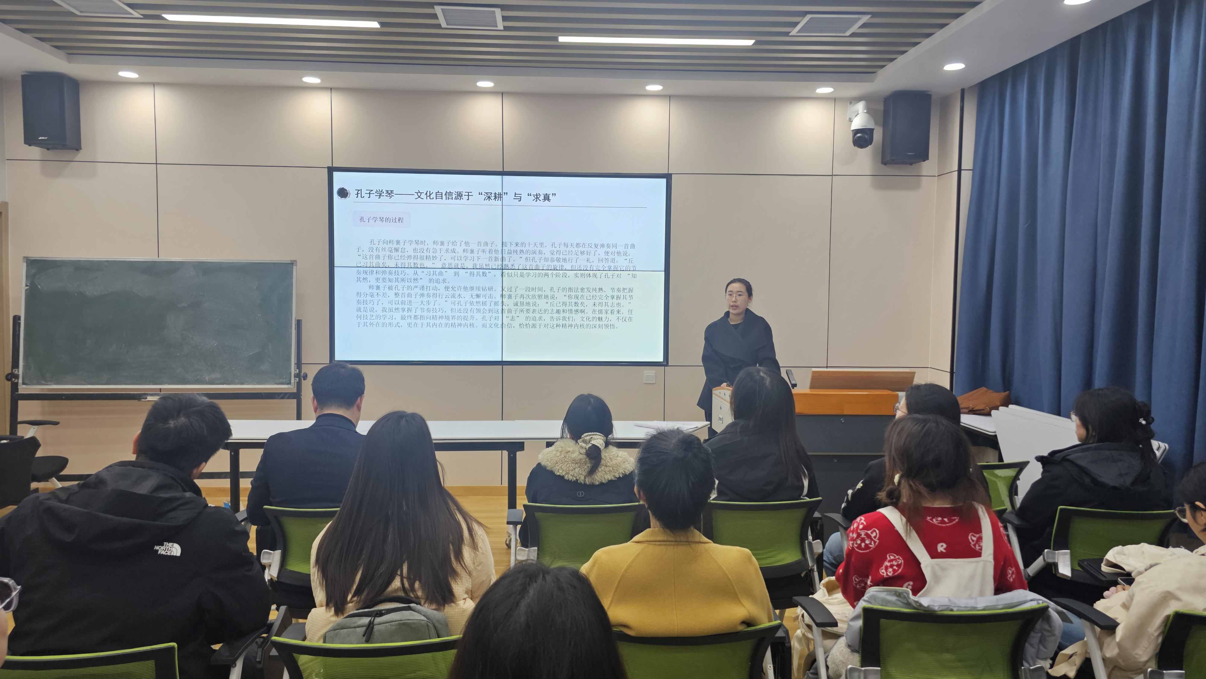 在B4-114成功举办“哲思润心,自信铸魂”主题宣讲活动。本次活动由学院中国哲学专业研究生冯佳音同学主讲,学院党委副书记王昭、团学干部及研究生代表等50余人参加了本次活动。