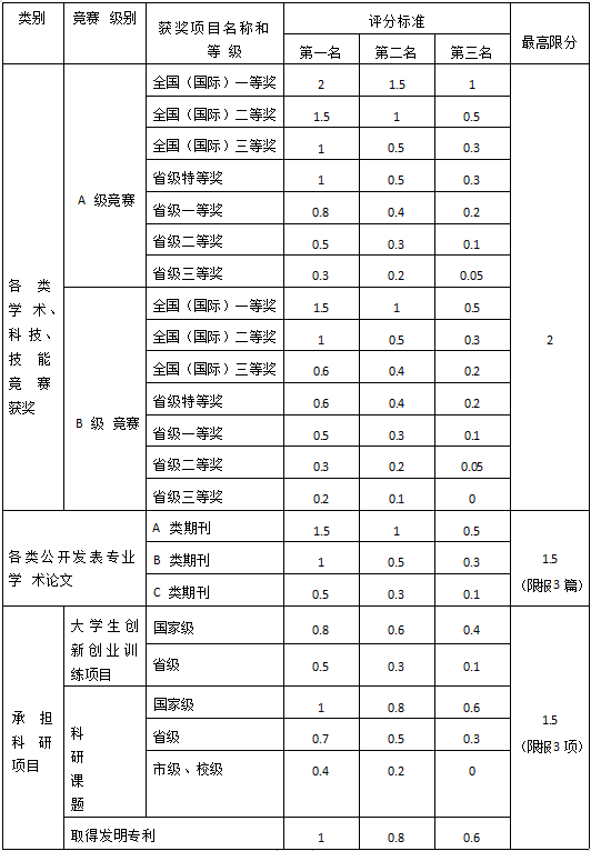5.学生同一项目参加同一类竞赛,只计最高级别的分值;同一科研成果重复获奖,只计最高级别的分值。