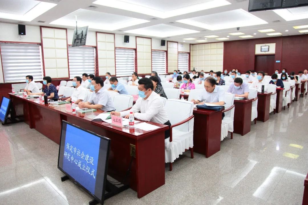 保定市社会建设研究中心成立仪式于7月1日上午在市人大常委会机关举行。市人大常委会主任马誉峰出席仪式并讲话。省人大社会建设委员会主任委员李景辉到会祝贺并讲话。市人大常委会副主任刘峰主持仪式,市人大常委会副主任杨义宝、秘书长谢永军,省人大社会建设委员会办公室主任白志国参加会议。研究中心由保定市人大社会建设委员会与驻保高校相关院(系、处)合作建立,围绕保定市社会建设需要,聚焦民生保障和社会治理的热点难点问题,开展理论研究和应用性政策研究。保定市社会建设研究中心主任由保定市人大常委会有关领导同志担任。