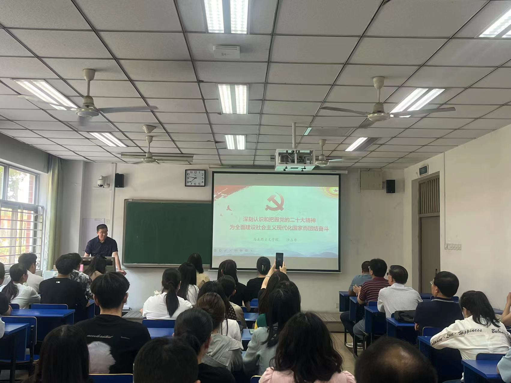 马克思主义学院沙占华副教授,应邀作了题为“深刻认识和把握党的二十大精神,为全面建设社会主义现代化国家而团结奋斗”报告。宣讲会由学院党委书记张露红主持。