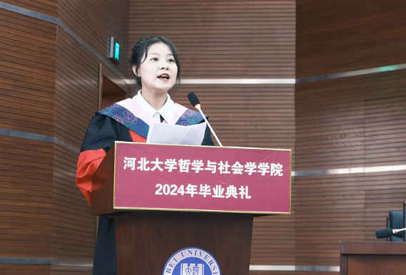 硕士研究生代表,河北省三好学生蔡璟浩表示,难忘母校浓厚的学术氛围,悠久的历史积淀,严谨的治学理念,有温度的成长陪伴,始终铭记“实事求是”的校训传统,奋发进取,昂首前行。