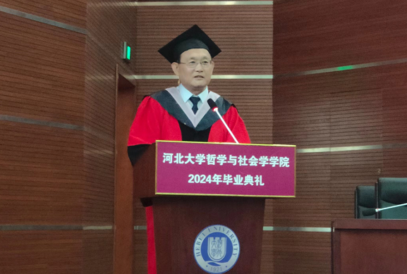 学院院长张燕京作了题为《毕业了,意味着什么》的精彩演讲,他以学者及长者的风格循循善诱、娓娓道来。毕业,于己意谓着完成了学业,具备了立身之本;于家意谓着长辈完成了养育任务,期许你开启新的人生的历程;于校意味着培养了优秀人才,阶段性完成了育人使命;于国意味着,又一批有志青年投入到新征程的建设洪流中。张院长希望同学们肩负家国情怀,心怀国家,成就事业;心怀理想,成就梦想;心怀责任,服务社会;心怀感恩,勿忘母校。既要热爱智慧,追求智慧;又要崇尚至善,践行至善。求智慧之学,行至善之事,转识成智,以达至善,成就人生,不负时代!