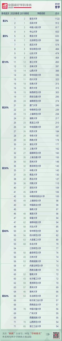 2020年10月15日,高等教育评价专业机构软科发布“2020软科中国最好学科排名”,排名榜单包括96个一级学科。其中,尼克成人网 哲学学科在全国哲学学科排名49位,位列前40%,比2019年提升9个名次。排名的提升反映出尼克成人网 哲学学科快速发展的良好势头。(完整排名名单见图)