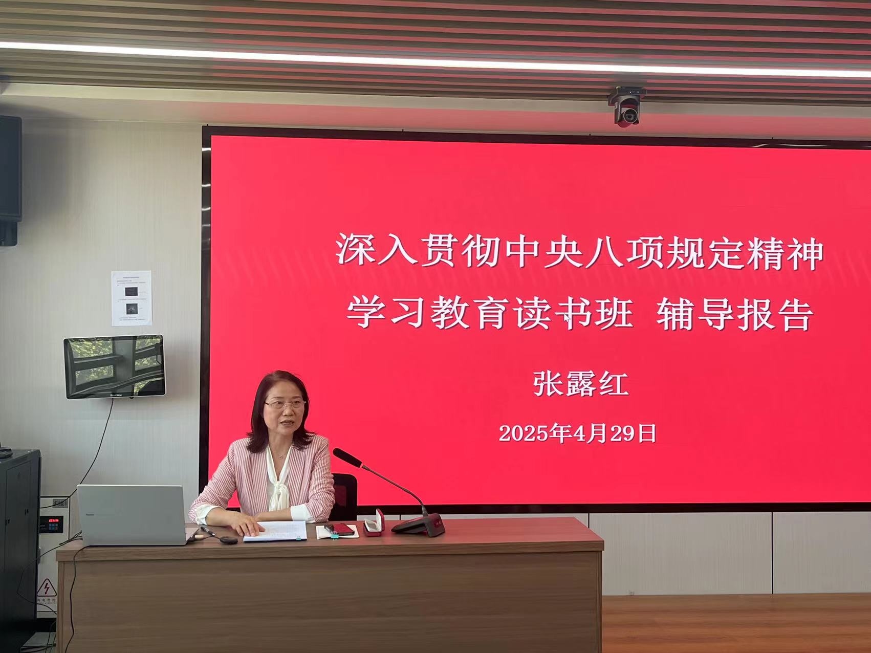 在读书班开班式上,学院党委书记张露红作辅导报告,并从“持续深入学习,在学深悟透上作表率”“坚持问题导向,在检身正己上作表率”“坚持知行合一,在守纪执纪上作表率”三个方面作动员讲话。读书班期间,邀请马克思主义学院王华玲教授进行《深入学习贯彻中央八项规定精神》专题授课辅导,组织收看了《反腐为了人民》警示教育专题片。学院全体党员干部围绕《习近平关于加强党的作风建设论述摘编》、中央八项规定及其实施细则精神等内容开展系统学习,并结合工作实际进行深入研讨交流。