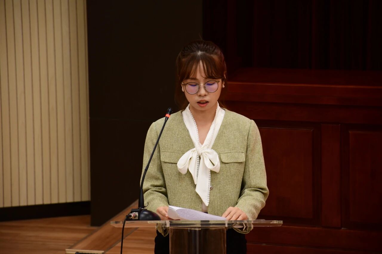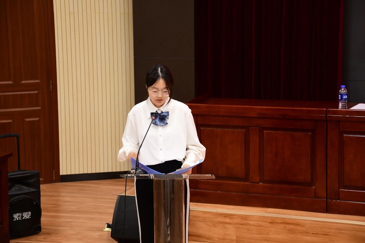 在校生代表 ,2023 级哲学专业博士生毛心悦与新生共勉,要不忘初心、砥砺奋进,厚植家国情怀、涵养进取品格,以奋斗姿态激扬青春,不负时代,不负华年。