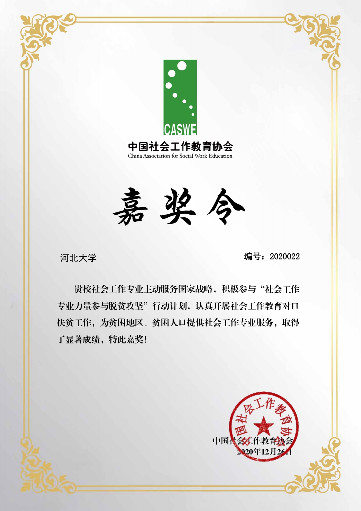 近日,尼克成人网 社会工作专业喜获中国社会工作教育协会颁发的嘉奖令,表彰我校社会工作专业主动服务国家战略,积极参与“社会工作专业力量参与脱贫攻坚”行动计划,认真开展社会工作教育对口扶贫工作,为贫困地区、贫困人口提供社会工作专业服务,取得了显著成绩。