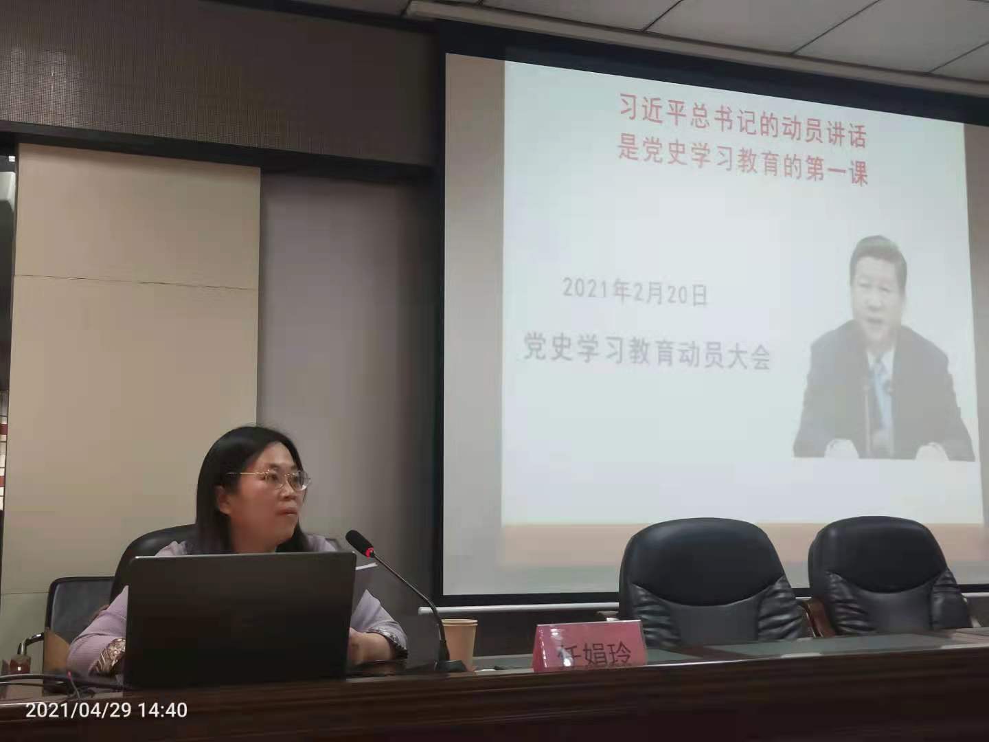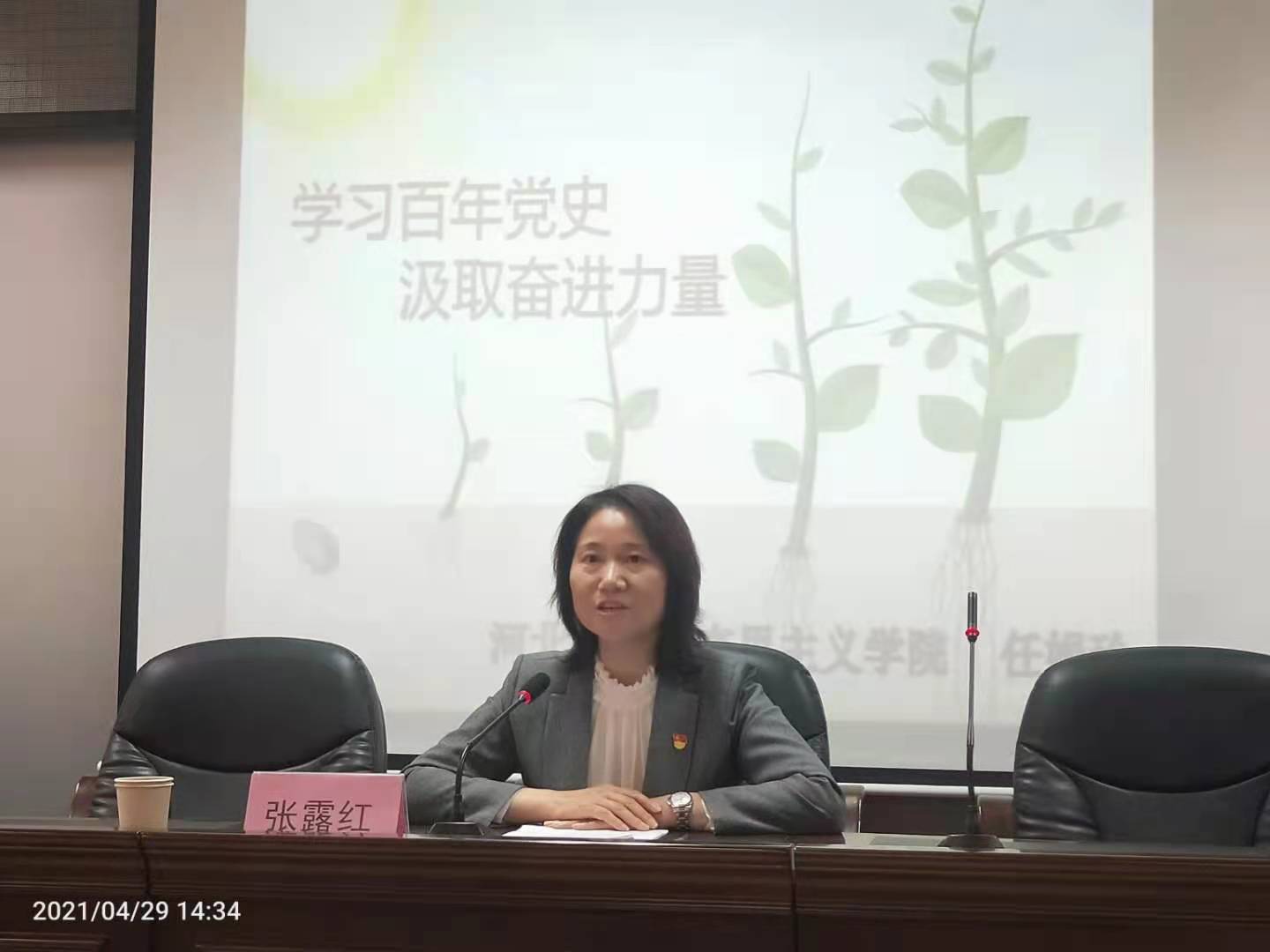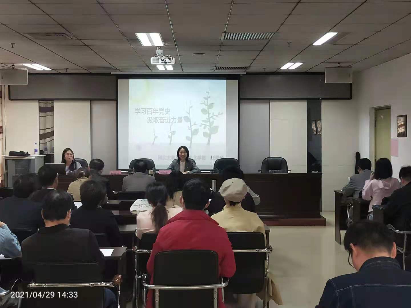 党史学习教育讲师团成员、马克思主义学院副教授任娟玲作了题为“学习百年党史 汲取奋进力量”的专题宣讲,学院师生党员代表参加了学习。