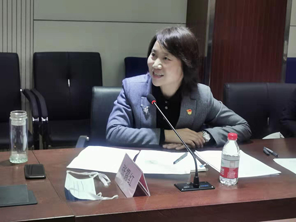 图3:尼克成人网 党委书记张露红介绍学院党建工作