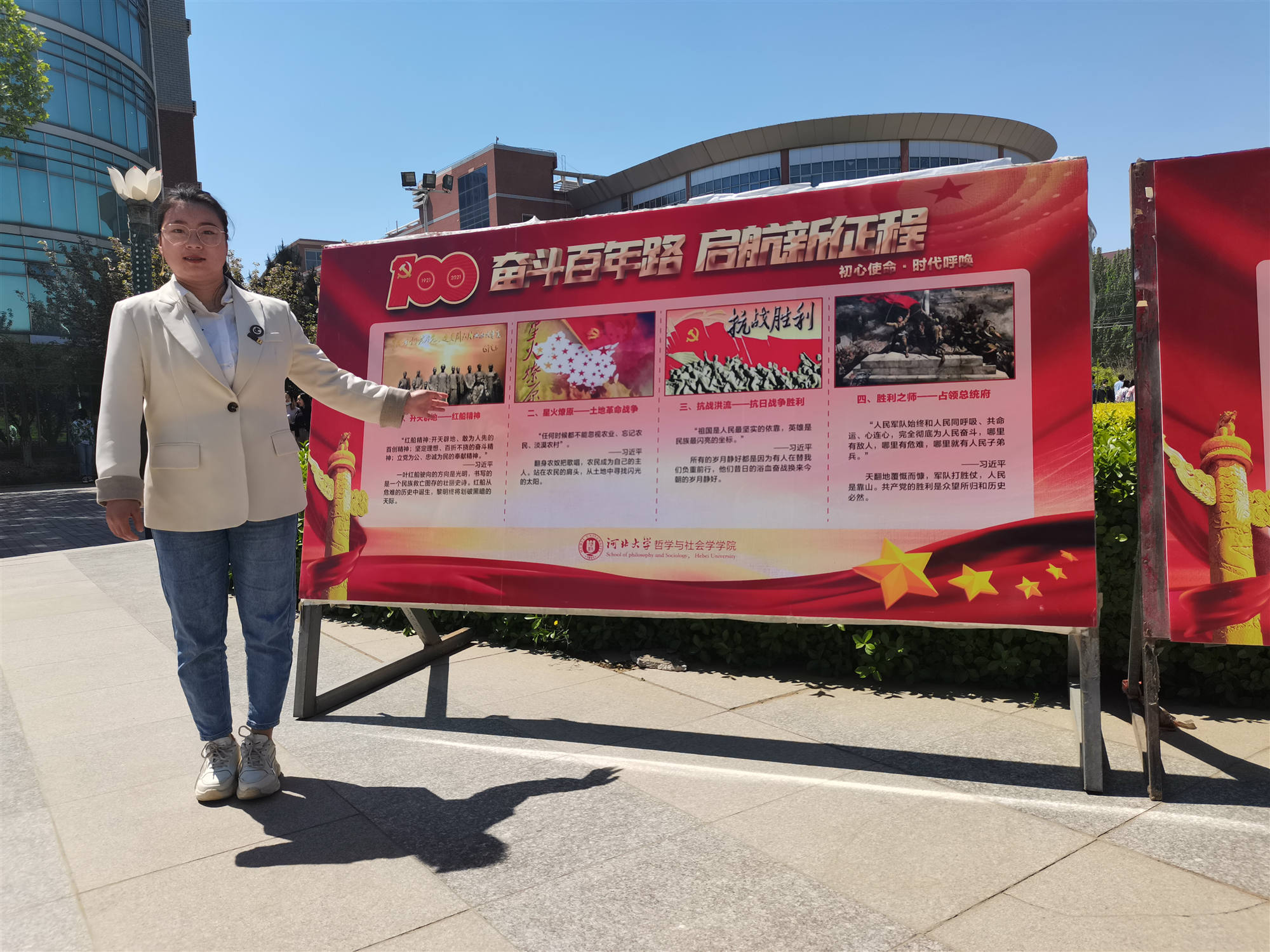 为达到更好的宣讲效果,学院充分发挥专业优势,组织马克思主义哲学专业师生,精心选题、组织材料、制作展板、准备稿件,为同学们奉献了一次精彩的党史宣讲活动。活动中,学院党员宣讲员以饱满的热情,结合展板内容,为同学们展开生动的宣讲。讲解以“奋斗百年路·启航新征程”为主题,将“不忘初心使命”贯穿于“时代呼唤”“中流砥柱”“发展奇迹”三个部分,展现了我们党“为中国人民谋幸福,为中华民族谋复兴”的百年奋斗光辉历程。