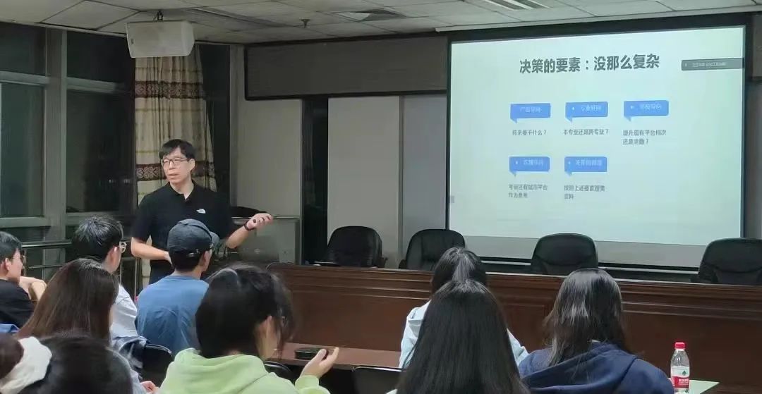 林顺利院长从当下考研形势、考研热点、科学备考等方面为同学们展开分析,林院长利用“决策矩阵”,整合专业、学校档次以及城市选择等资源,为同学们指明最适合自己的选择才最重要。此外,林院长从专业的角度分析了考研的时间安排、专业课的准备程度、研友的选择、如何持续获得考研动力等。