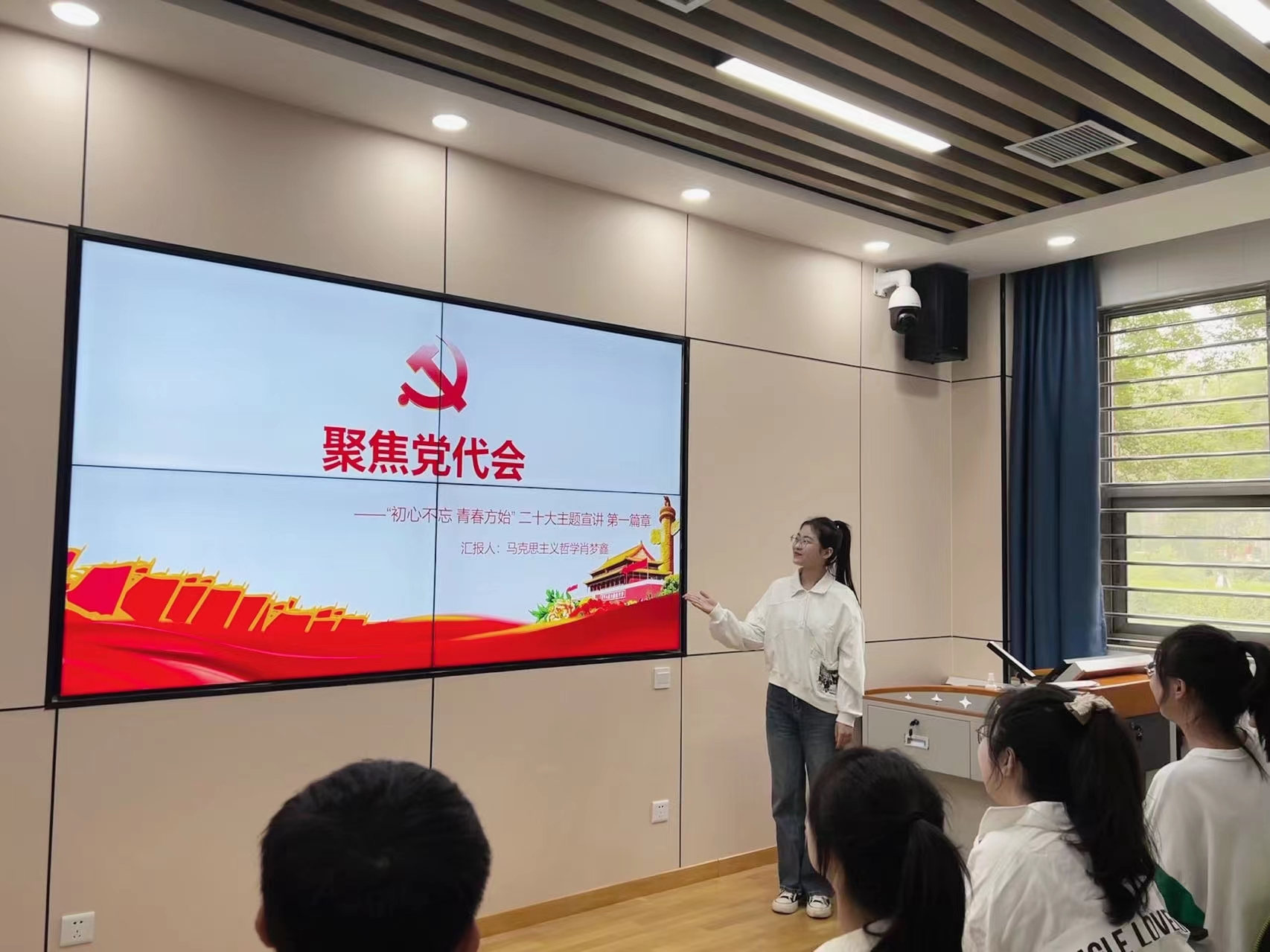 宣讲团六名同学紧紧围绕党的二十大报告,从“聚焦党代会、学习新思想、担负新使命、回应新期待、共赴新未来、争做新青年”六个方面,对报告进行深入解读。