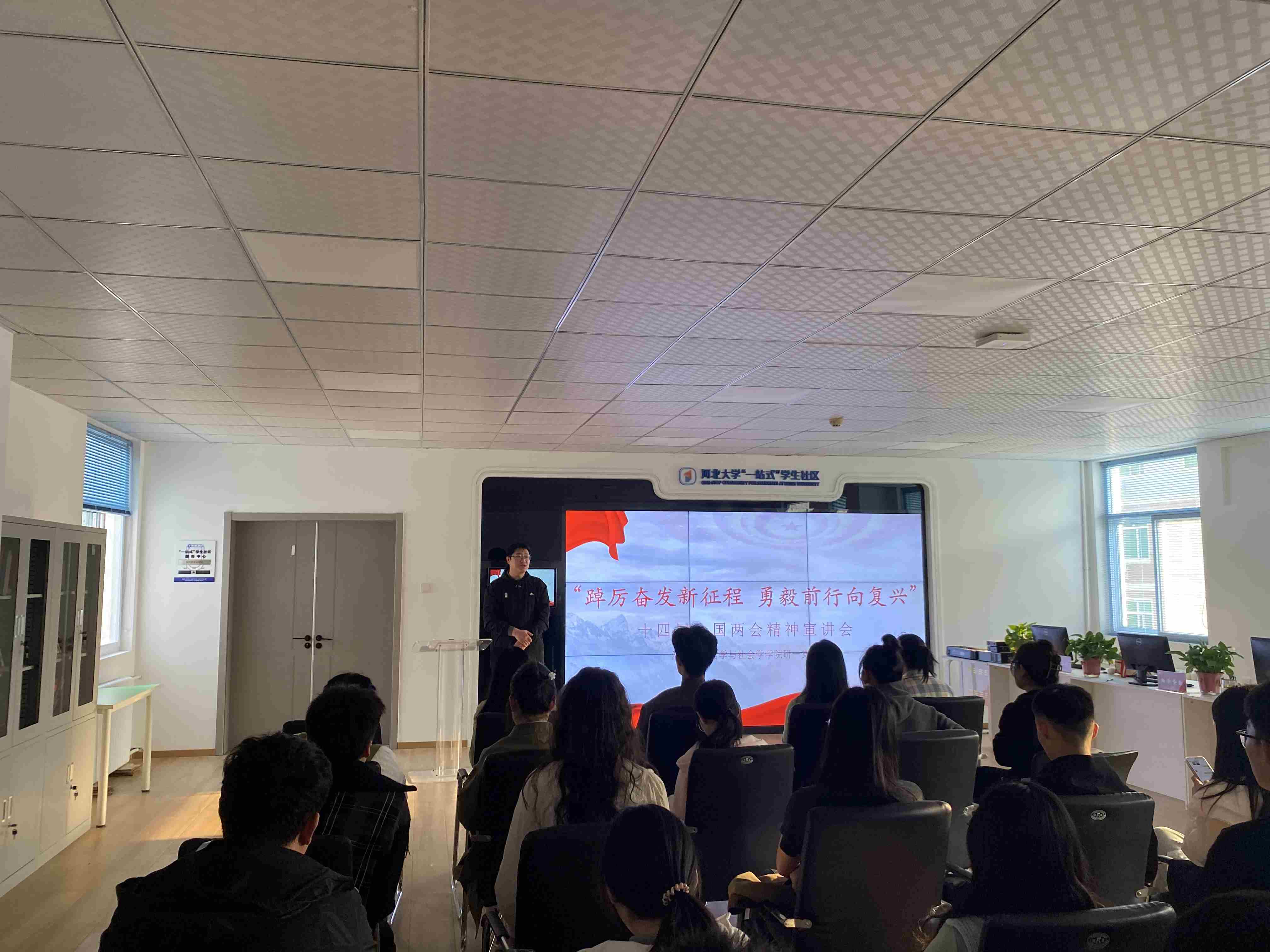 王昭老师指出第十四届全国两会的召开是举国盛事,两会上我们规划蓝图,凝聚共识,提振信心,起笔新篇。宣讲团要持续发挥专业优势,做好两会精神宣讲,党的方针政策宣讲,让同学们梦想接连实现,赓续伟大精神,充满生机活力。
