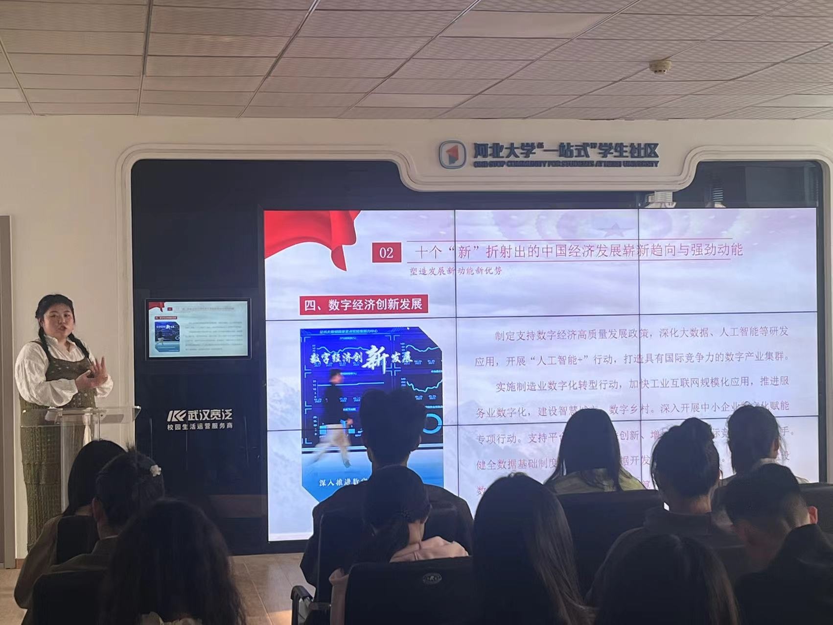 宣讲团同学以对政府工作报告、习近平主席重要讲话精神的学习为基础,紧紧围绕两会专题精神,从“决胜千里,挥斥方遒”“光耀千秋,民本为重”“砥砺前行,创新求索”“海纳百川,共谋大同”“随机应变,智定乾坤”五个方面,对两会内涵进行了系统阐述与深入解读。整个宣讲会内容丰富、案例生动、逻辑清晰、互动顺畅,同学们激情飞扬的讲解深化了与会师生对两会精神的认识和理解。宣讲会后,师生集体重温了两会宣传片信心三部曲,以清晰的目标展现信心,让振奋的消息夯实信心。