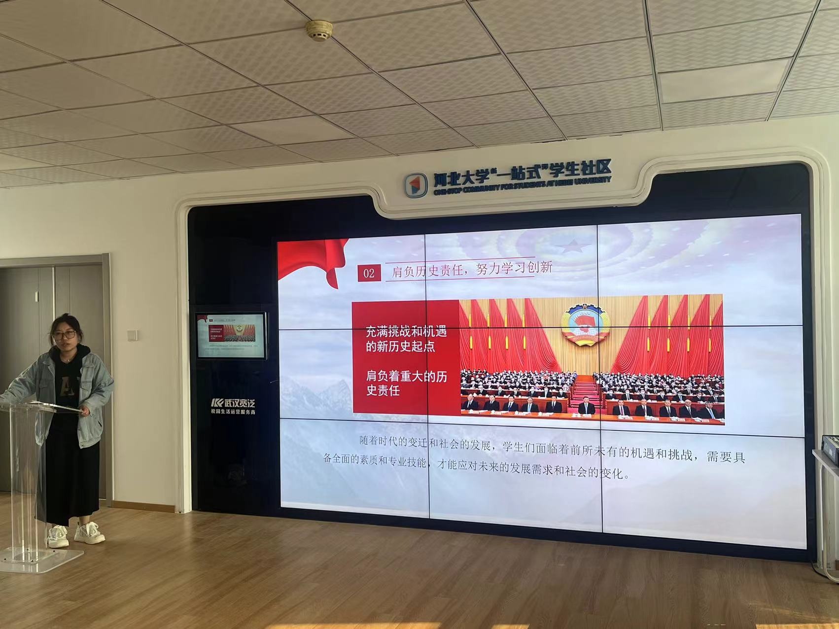 学院“星火成炬”宣讲团,以学生为主体,促教师做助力,扎根学生社区,行动在学生身边,让学习、贯彻党的精神在学院师生政治生活中“更近”、“更实”、“更燃”。