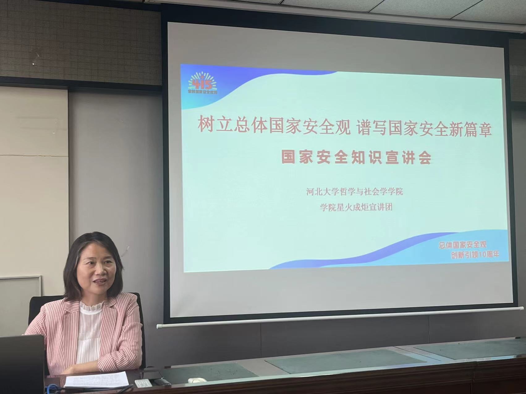 2024年4月14日下午,哲学与社会学院在B1六楼学术报告厅举办“树立总体国家安全观 谱写新时代国家安全新篇章”宣讲会。学院党委书记张露红、副书记王昭,学院学生宣讲团成员,师生代表60余人参加了本次活动。活动由专职辅导员尹清华主持。